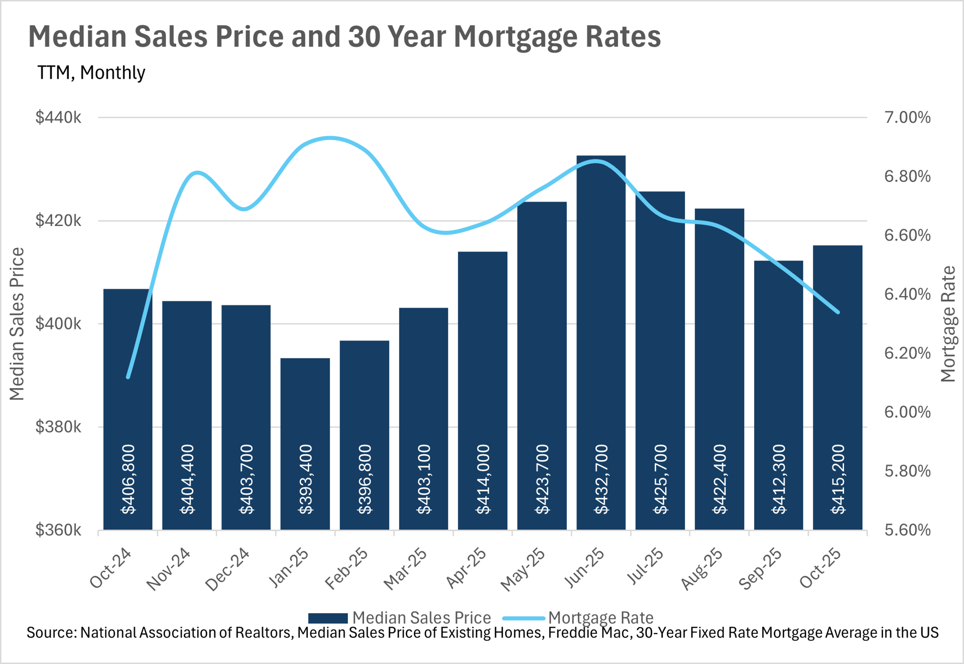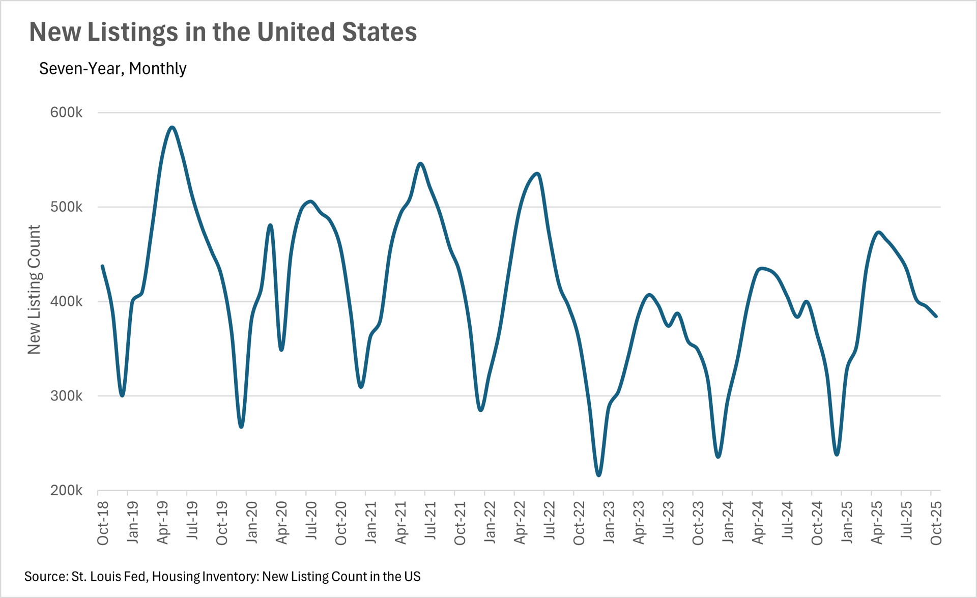 Throughout much of the year, inventories at a national level have remained remarkably steady, with most months hovering near the 1.5 million mark. With that being said, in the month of October, we saw inventory levels at roughly 1,520,000, representing a 10.95% increase on a year-over-year basis. During that same time period, we saw more than 384,000 new homes hit the market, representing an increase of 5.08% on a year-over-year basis. We also saw the median sale price for a home increase by 2.06%, bringing the median home value to $415,200.