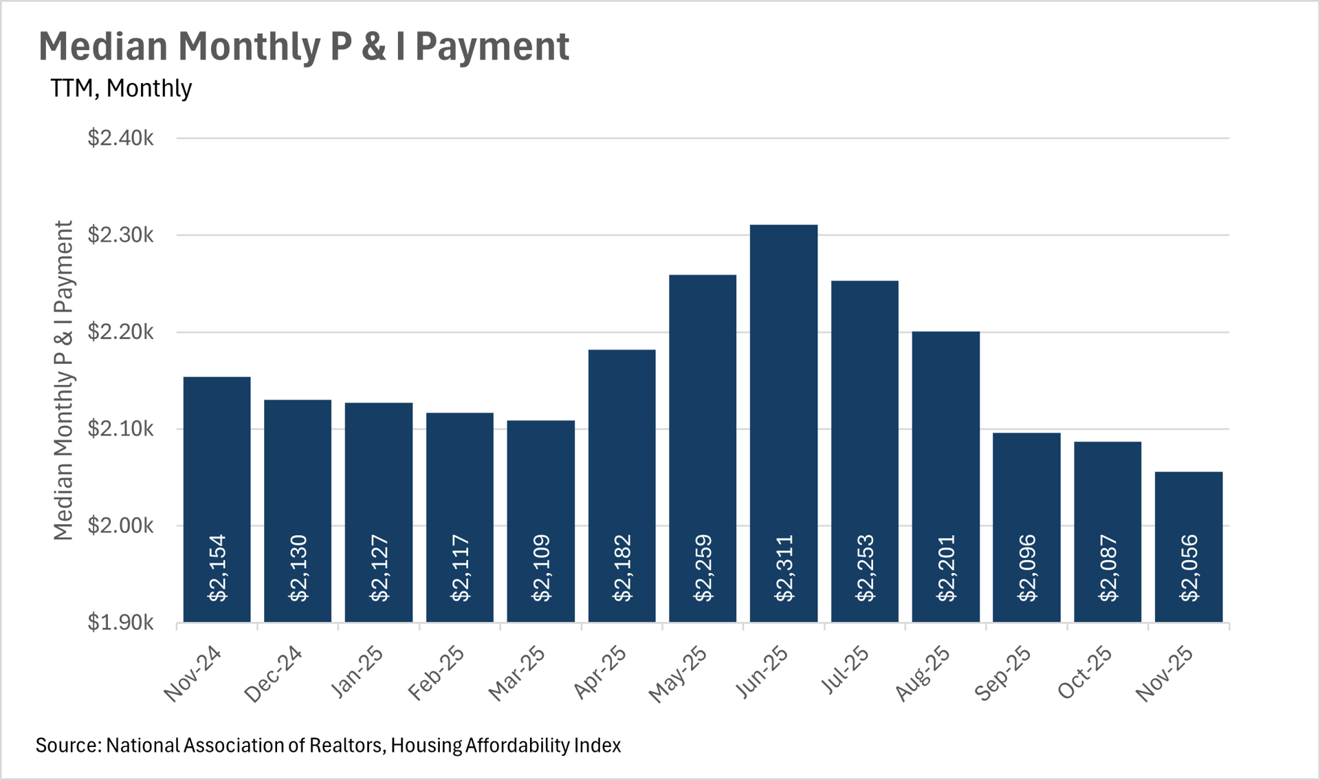 As interest rates continue to fall, median monthly P&I payments do as well, making housing slowly but surely more affordable on a national scale.