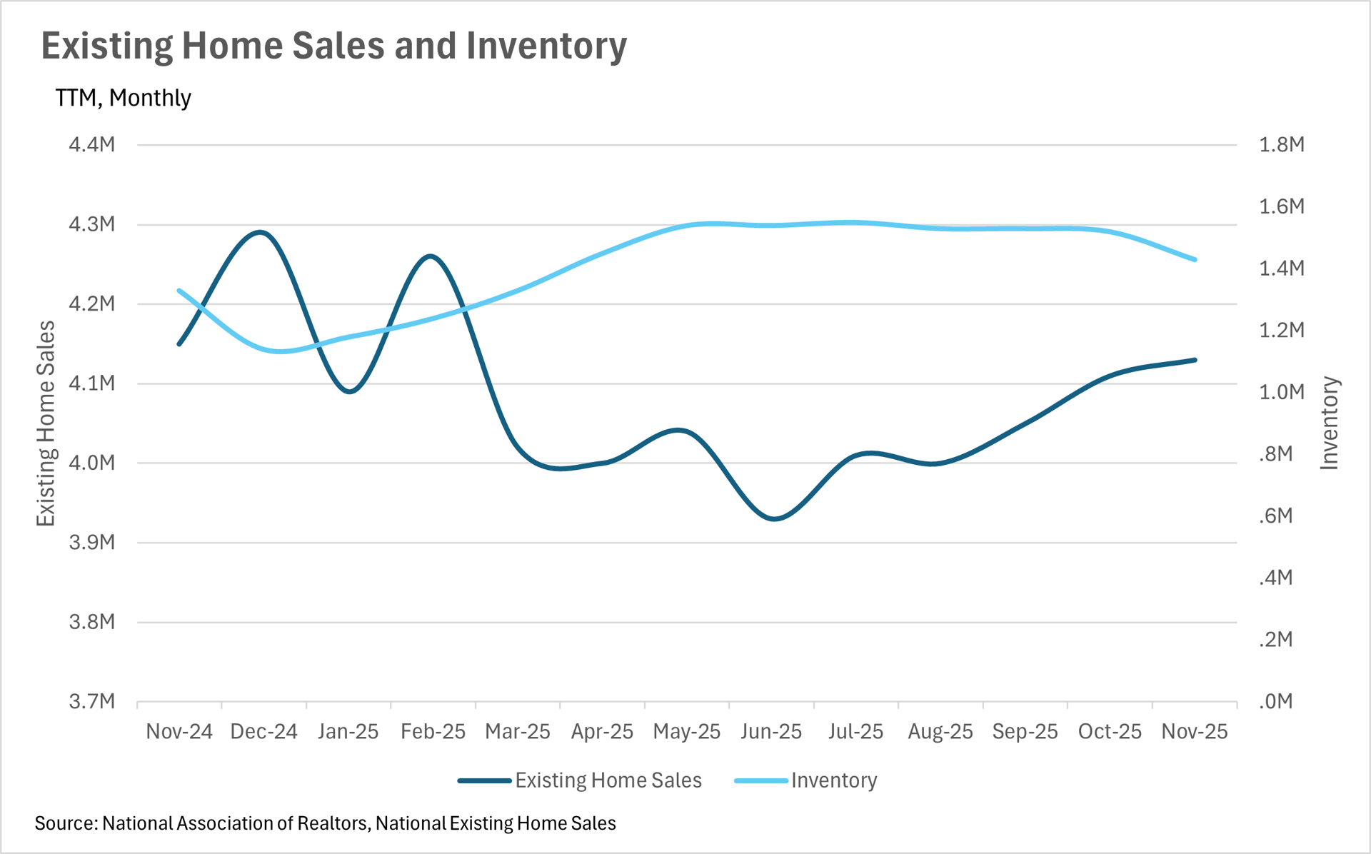 While you might expect inventories to decrease as interest rates decrease, that wasn’t the case in November. In fact, we saw inventories increase by 7.52% on a year-over-year basis, despite falling rates. This is largely attributable to the fact that existing home sales decreased by roughly half a percent while new home listings increased by roughly 1.7% on a year-over-year basis. We’ll likely see inventories continue to increase as we move through the winter months, until the usual spring rush begins and inventories start to move once again. Overally, we had a very different year in terms of market dynamics in 2025, so it’ll be interesting to watch where the market goes in 2026.