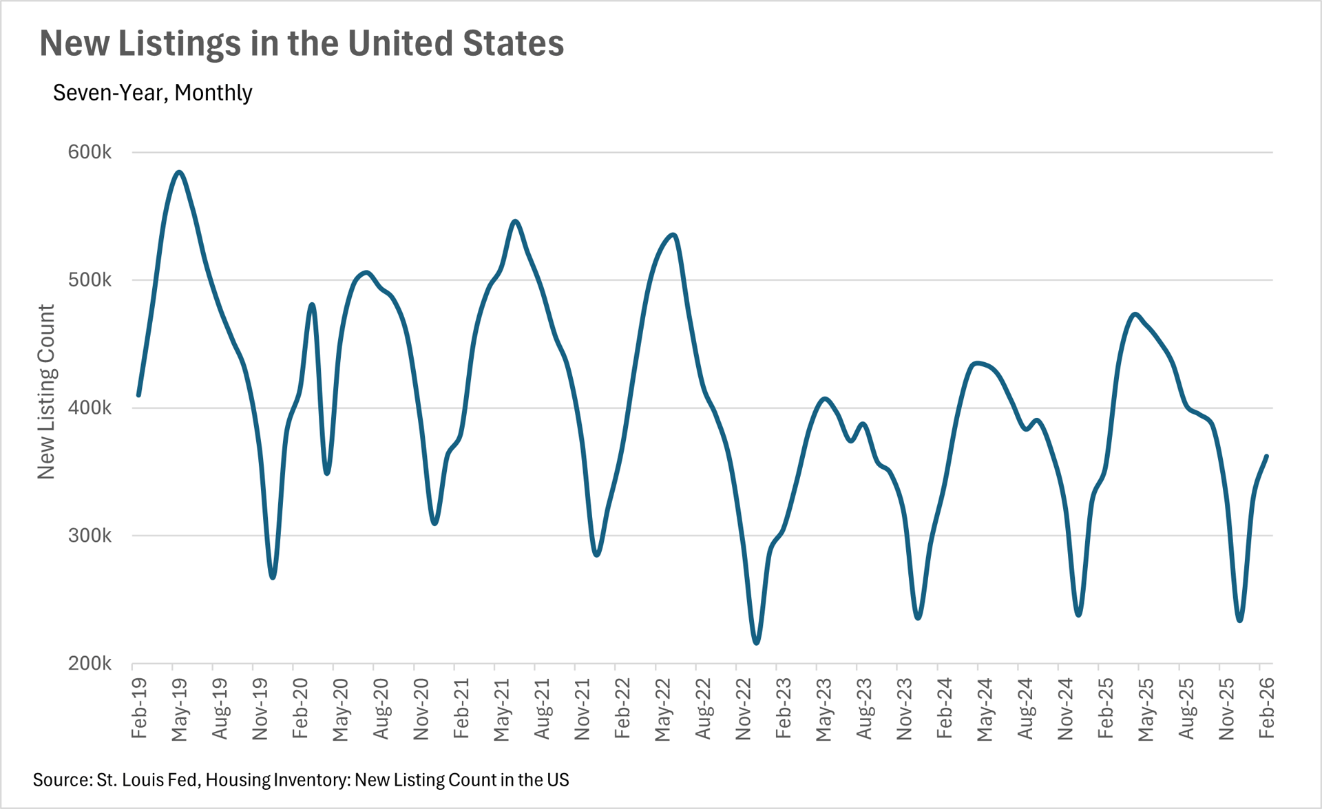 As we move out of the seasonally slow winter months, we're starting to see new listings pick up, which is a great sign for the market heading into the spring. In February, there were 362,180 new listings that hit the market, representing a 2.41% year-over-year increase and a 10.01% month-over-month increase. This uptick in new listings is encouraging, as it suggests that homeowners are starting to feel more comfortable putting their homes on the market. On the inventory side, there were 1,220,000 homes available for sale in January, which is up 3.39% on a year-over-year basis. While this is certainly a step in the right direction, it's worth noting that inventory levels are still well below the levels we need to see in order for the market to truly become balanced. That said, the combination of rising new listings and modestly higher inventory levels should give buyers a few more options to choose from as we head into the busier spring months.