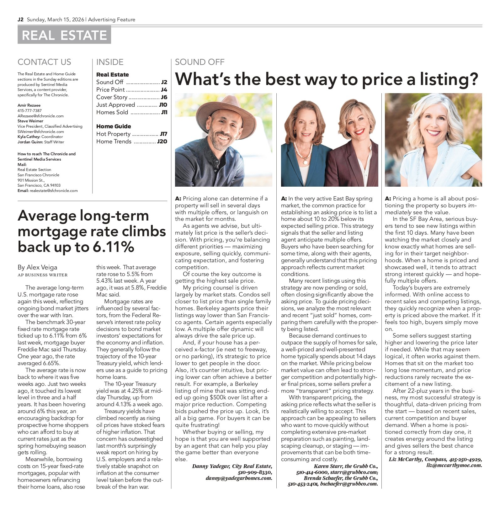 A: In the very active East Bay spring market, the common practice for establishing an asking price is to list a home about 10 to 20% below its expected selling price. This strategy signals that the seller and listing agent anticipate multiple offers.